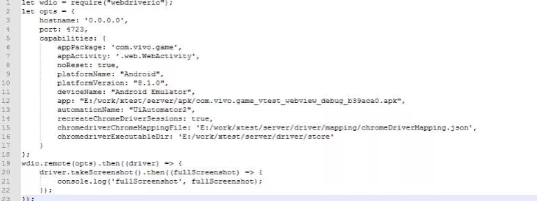 下面这一段自动化测试脚本代码基于Appium实现了在app里截屏的功能: