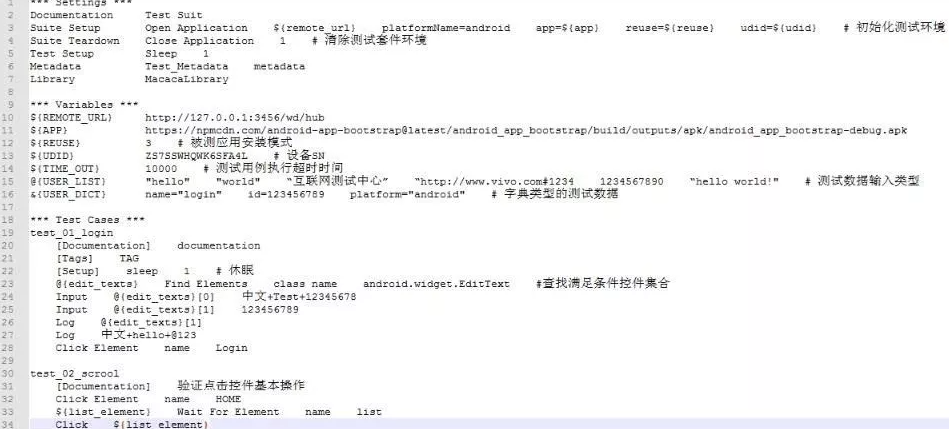 - 下面是基于Robot framework的自动化测试脚本片段