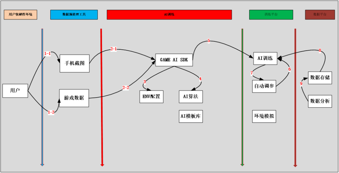 - Step3:通过环境模拟平台或在线直接进行 AI 训练;