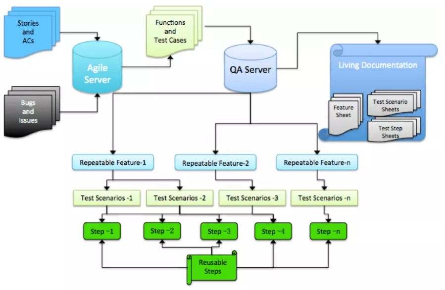 本方法是将代码活文档和系统管理结合,通过测试管理系统编写和管理测试用例,然后会自动生成代码模式的测试用例。也可以只编写代码模式的测试用例,然后自动同步到测试管理文档中。自动化测试在持续集成流水线执行,通过流水线进行展示并同步到测试管理系统中。