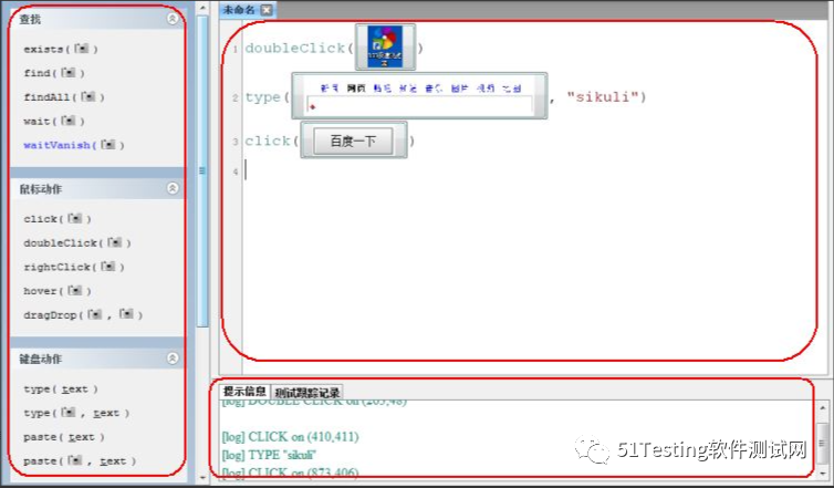 同样的,将Sikuli脚本作为含有图形的脚本语言进行调试,更有助于加深理解。