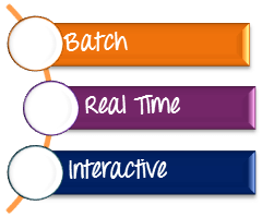 2、大数据处理可以是批处理,实时或交互式处理