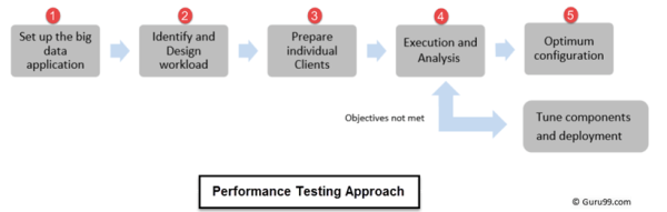 - 数据处理:它涉及验证执行查询或映射缩减作业的速度。它还包括在底层数据存储填充到数据集中时独立测试数据处理。例如,在底层HDFS上运行Map Reduce作业;