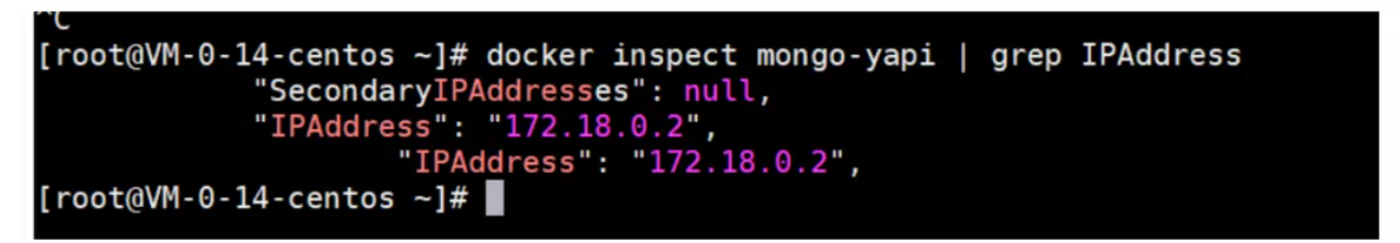 docker inspect mongo-yapi | grep IPAddress